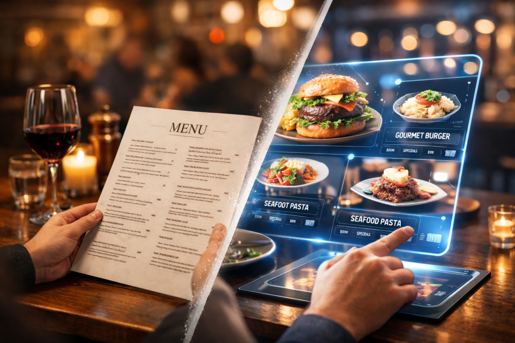 Transform traditional paper menus into interactive WebAR experiences. Customers scan QR codes and view dishes in 3D before ordering — improving engagement and conversion.